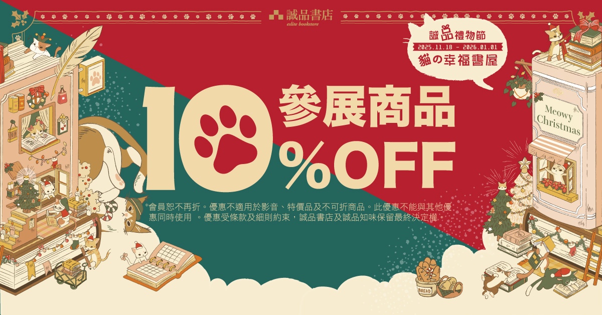*優惠只適用於誠品銅鑼灣書店,不適用於專櫃消費。消費金額以所有折扣後淨額計算。優惠不適用於食品、影音、雜誌、特價品及不可折商品。會員恕不再折,優惠不可與其他店內優惠/現金券(如誠品校園券、HKTVmall現金券)/電子優惠券同時使用。電子現金券必須於付款前出示有效誠品人會員卡(APP或實體卡)方可享有,恕不累贈,過後恕不受理,補登消費恕不補發。活動僅適用於香港申辦之指定會員,其他地區會員帳號恕不適用。電子現金券將於交易後7個工作天內自動置入合資格會員帳戶內。