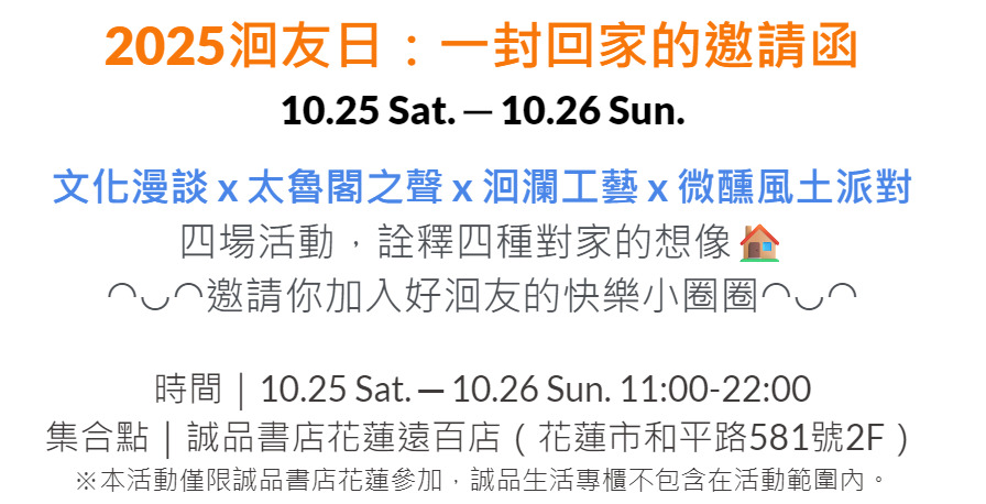 10.25-10.26✿首屆花蓮會員日登場!2025洄友日:一封回家的邀請函💌