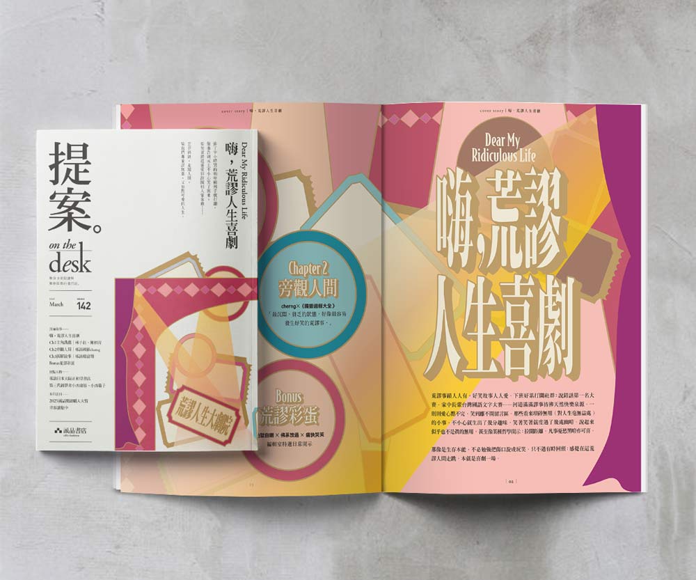 本期《提案》就从这个有点无厘头的念头开始。我们在想,荒谬之所以带着点可爱,也许正来自於那剧烈冲突碰撞出的空白吧——「蛤?」「有这种事?」於是不小心就笑了出来。好比一夕之间没了妈妈的子钰,从不介意用地狱梗边笑边表达想念;又或是用尽各式爱美修脸的栢青,把不自信的成长痛写成了极致纯爱剧。