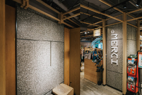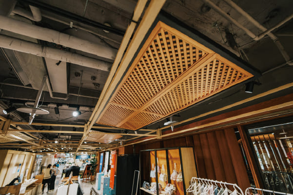On the 4th floor, nostalgic elements of old Taiwanese homes are thoughtfully reinterpreted. Terrazzo flooring material is repurposed for columns, while traditional wooden window frames and louvered shutters, once used on facades, now adorn the ceiling as decorative panels.