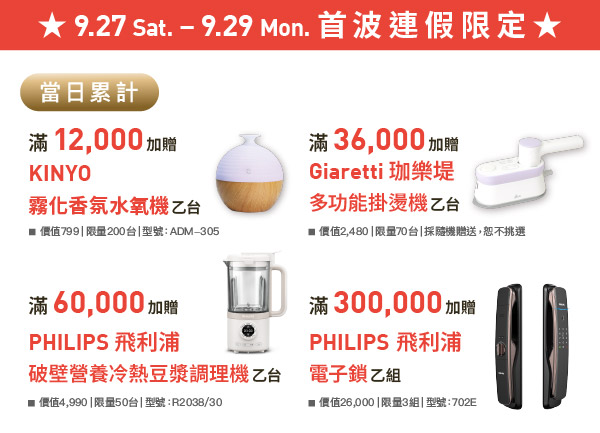 ▌ 贈禮為電器或3C產品需本人填寫3C免責聲明同意書方可兌換。