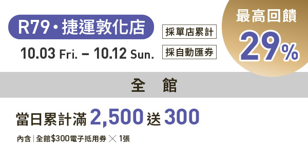 ▌ 全館臨時櫃、特賣會、及R79-photoism專櫃恕不得使用「全館$300電子抵用券」。