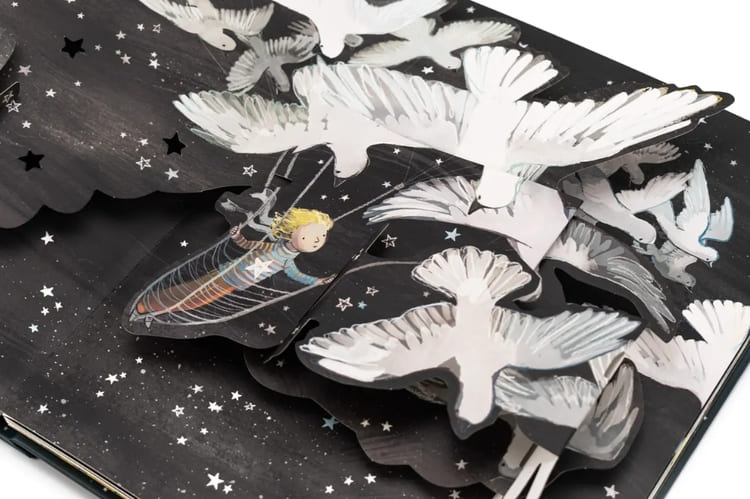《小王子立體書》由得獎詩人 Louise Greig 重新改編,加上 Sarah Massini 如詩般的插畫,讓讀者彷彿踏上那顆只有小王子與玫瑰的星球。書中以細緻的立體紙藝重現玫瑰花盛開的瞬間、小王子替玫瑰遮風擋雨的溫柔,甚至是旅途中與點燈人、地理學家等角色的相遇,每一幕都像從紙上呼吸般鮮活。