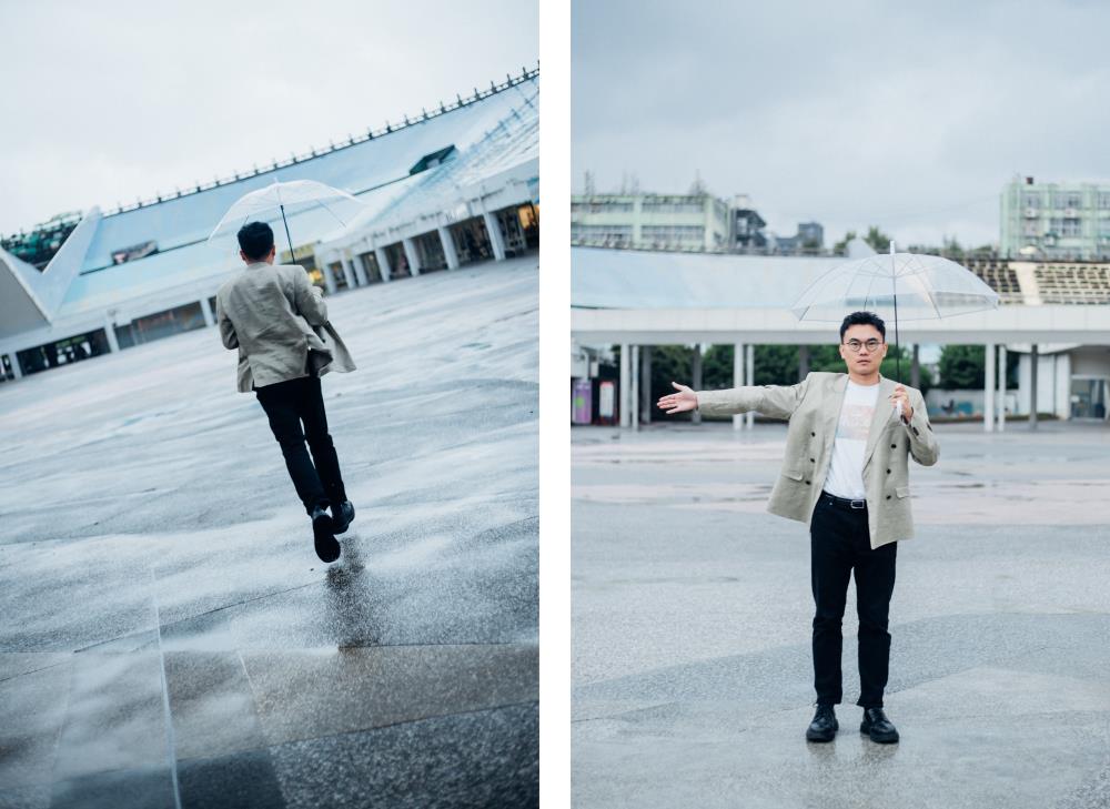 拍攝約在客印最常跑步放鬆的地方。邊走邊比劃著平時的跑步路線,準確說出幾點通常天候如何、他通常怎麼安排時間,滿滿自律氣息。好奇問起他會因為不輕易懈怠的性格,不敢隨便慶祝嗎?他幾乎秒答不會。就像他這幾年開始,當工作很累、情緒到了極端的時候,就會去吃牛排──必須是鐵板的,上桌時滋滋作響,得用餐巾紙擋在胸前,再拿起有軟管尖頭的番茄醬,先甩一下(把醬集中在瓶口),再擠出完美閃電。他說那時會有種自己是大廚的感覺,「有這些小小的慶祝,才有辦法一直往前走。」