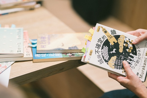 雖然路不好找,10分鐘後馬欣依然成功抵達了基地書店。她提著誠品的袋子,像百寶袋,倏忽從中挖出早期故鄉版的《村上春樹短篇小說傑作選》、時報版《邊境.近境》、《挪威的森林》、《城與不確定的牆》⋯⋯這兵馬倥傯的10分鐘,遠遠阻礙不了她談起村上春樹的熱情。