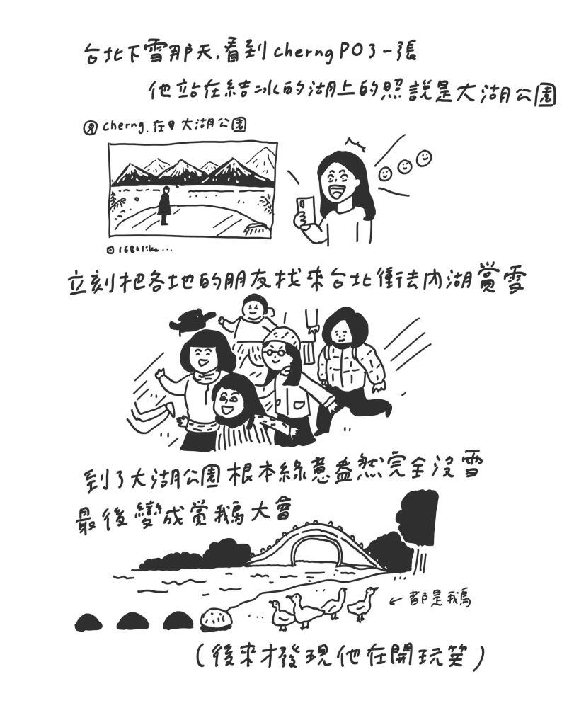 週報讓他更緊密與讀者互動,也圓滿回應自己愛畫搞笑漫畫的初心。cherng 雖說週報是他的孩子,但細數這些發文的真實心境,他卻也像極了成功吹出大泡泡、用力要大人快看的稚嫩青年。