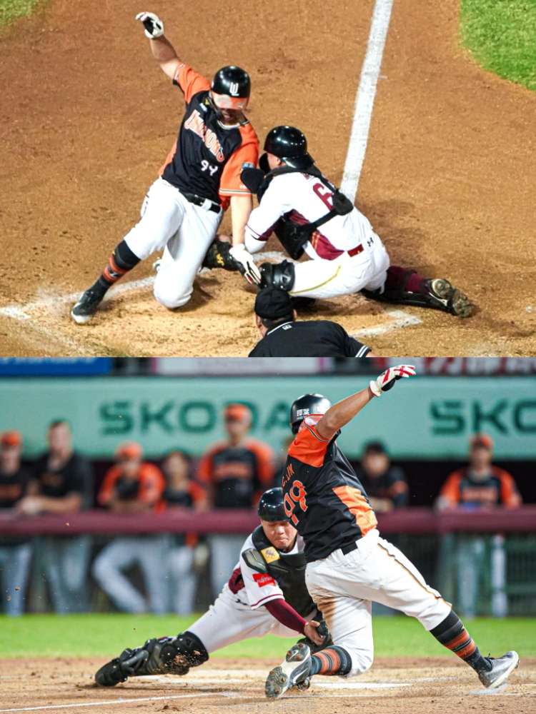 中華職棒季後挑戰賽本壘攻防的瞬間。 | 攝影師 呂佳龍