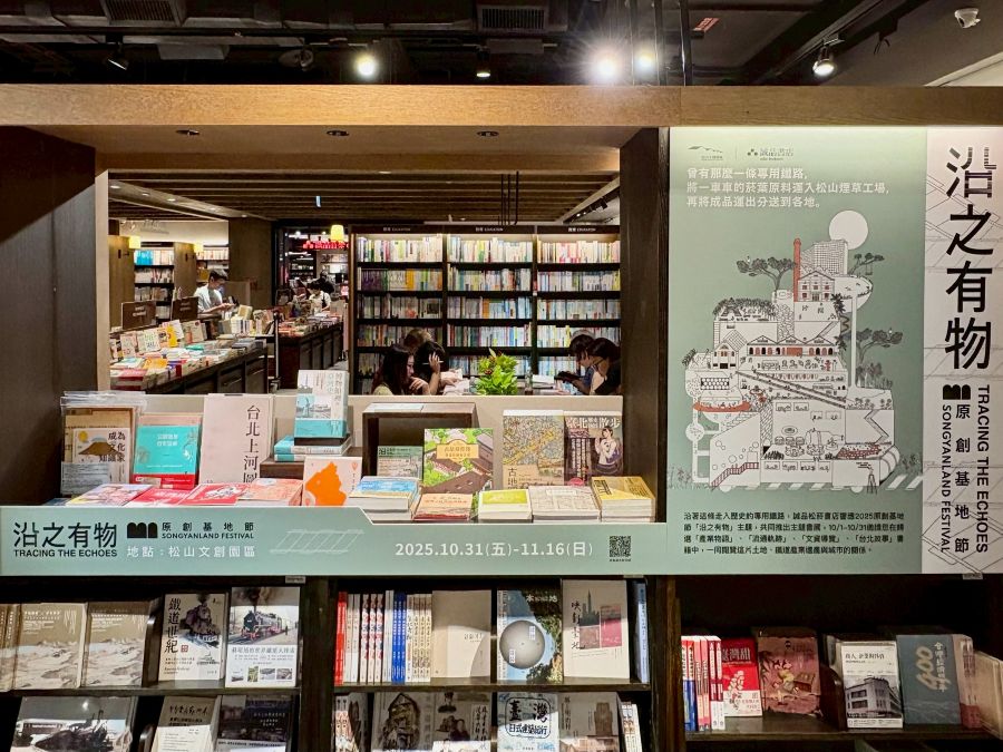 誠品書店松菸改裝開幕煥然新章,與松山文創園區2025原創基地節「沿之有物」合作,規劃靈感書單陪伴讀者每一頁都綻放靈光。