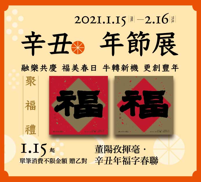 跨過2020,誠品書店為大家加倍福氣,在辛丑年的開春,將董陽孜老師的福字,發想了一紅一金的設計。