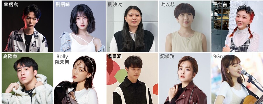 還有洪暐哲、紀儀羚、PG 陳姵尹、范范 (范庭瑜)、ELKIE莊錠欣、郭家瑋等多位新生代音樂人