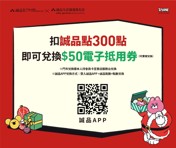 ✦扣誠品點300,即可兌換$50電子抵用券乙張(可累計兌換)