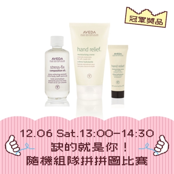 最快完成的組別將獲得AVEDA寧紓壓雙手呵護組(價值3,160)/人!