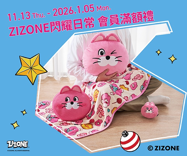 💖 ZIZONE閃耀日常 會員滿額禮——收納包、洗衣袋、抱枕毯等你收集!