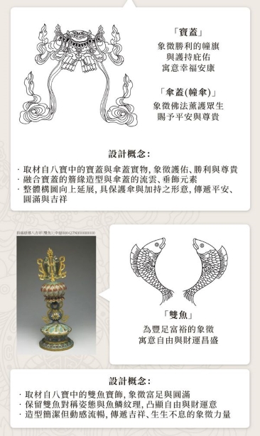 本次故宮聯名款特別選取八吉祥中富有代表性的八種吉祥圖騰: