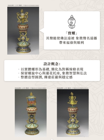 ① 寶螺:象徵遠播名聲,帶來福祿與順利。