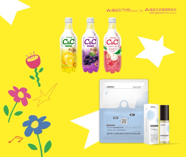 ● 黑松C&C氣泡飲共三種口味(檸檬/葡萄/荔枝果茶);AKIMIA微電流面膜共兩款(日夜光感透亮、ECTOIN®光修護),採隨機贈送,恕不提供挑選。