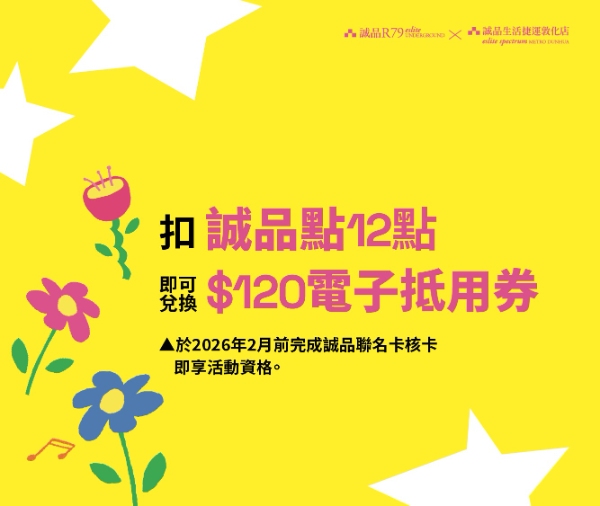 即可兌換$120電子抵用券乙張(限量1,000張;每聯名卡會員限換乙份)