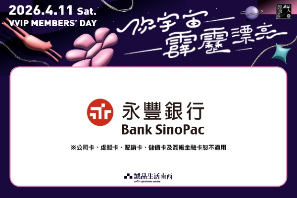 ● 電子抵用券使用期限:2026.4.11 Sat.-2026.5.20 Wed.止,逾期無效。詳細使用規範依券面說明為準。