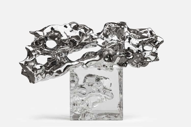 圖片由誠品畫廊提供;展望,《假山石 165(六面假山石)》,2016-2021,不鏽鋼、底座:亞克力樹脂,作品:29 x 25 x 78 cm、底座:25 x 25 x 25 cm,2個組件,4Ed.+ 1 A.P.