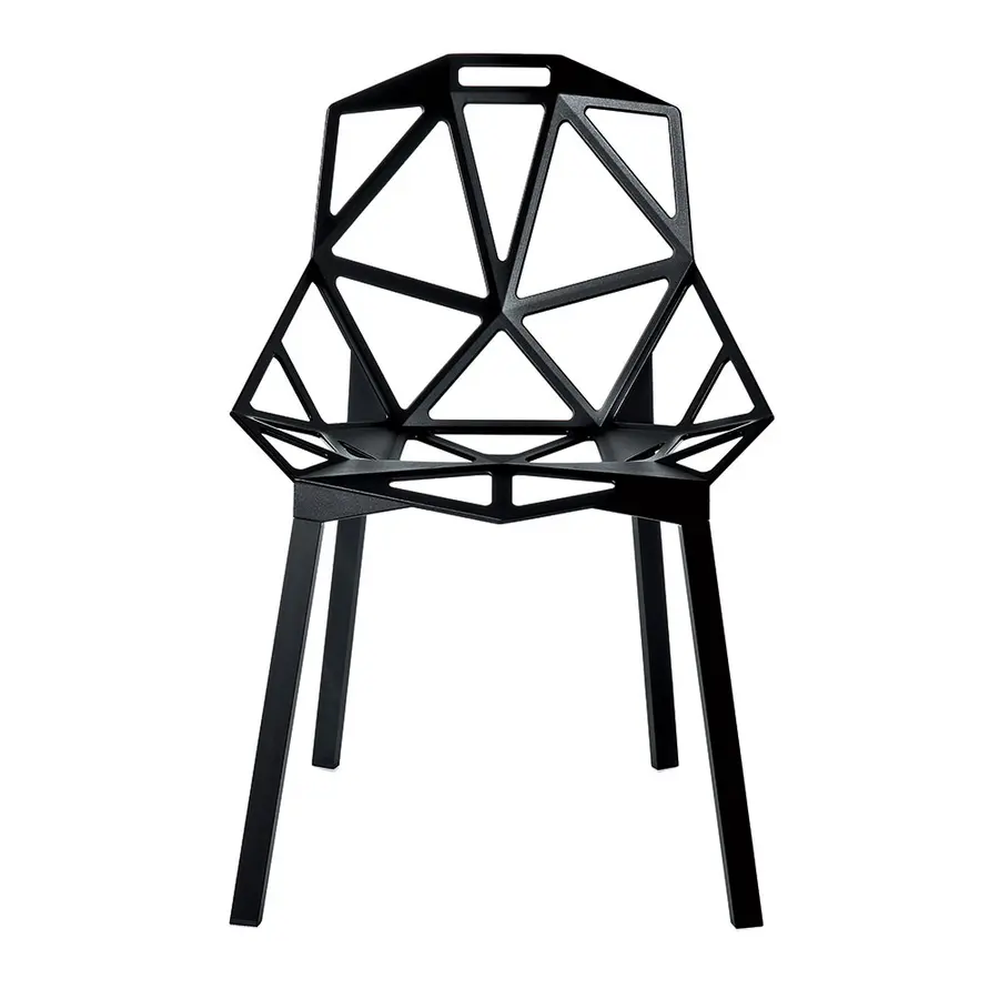 和傳統工匠打造拼湊的金屬家具不同,Chair One 的椅面是利用鋁原料錠高溫融化後,擠壓注入模具一體成型鑄造而成。幾何構成的多面立體座面角度經過精心計算,在實際登坐時會比目視想像更舒適。